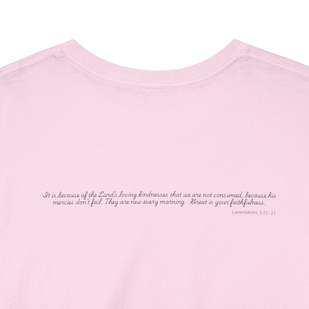 ✨ This unisex 100% cotton tee blends faith and style. It features Lamentations 3:22-23, reminding you of life's true priorities. Show your commitment to God's word with pride. Perfect for casual wear, it layers well with other outfits. Ideal for faith-based events, it inspires others around you.