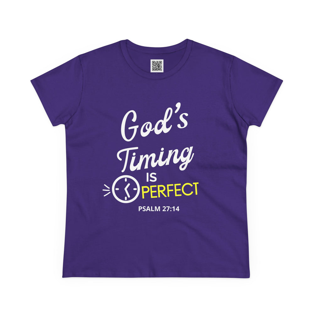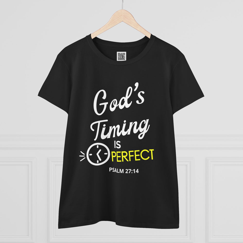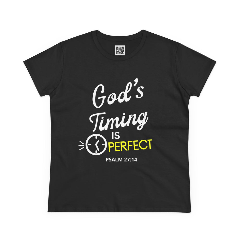 ✨ Discover the "God's Timing is Perfect" Tee, a 100% soft style cotton short-sleeve streetwear. It features a striking clock graphic, symbolizing God's eternal timing. The bold text reminds you of His unwavering presence. Underneath, Psalm 27:14 offers hope and patience. This design invites you to share your faith boldly.