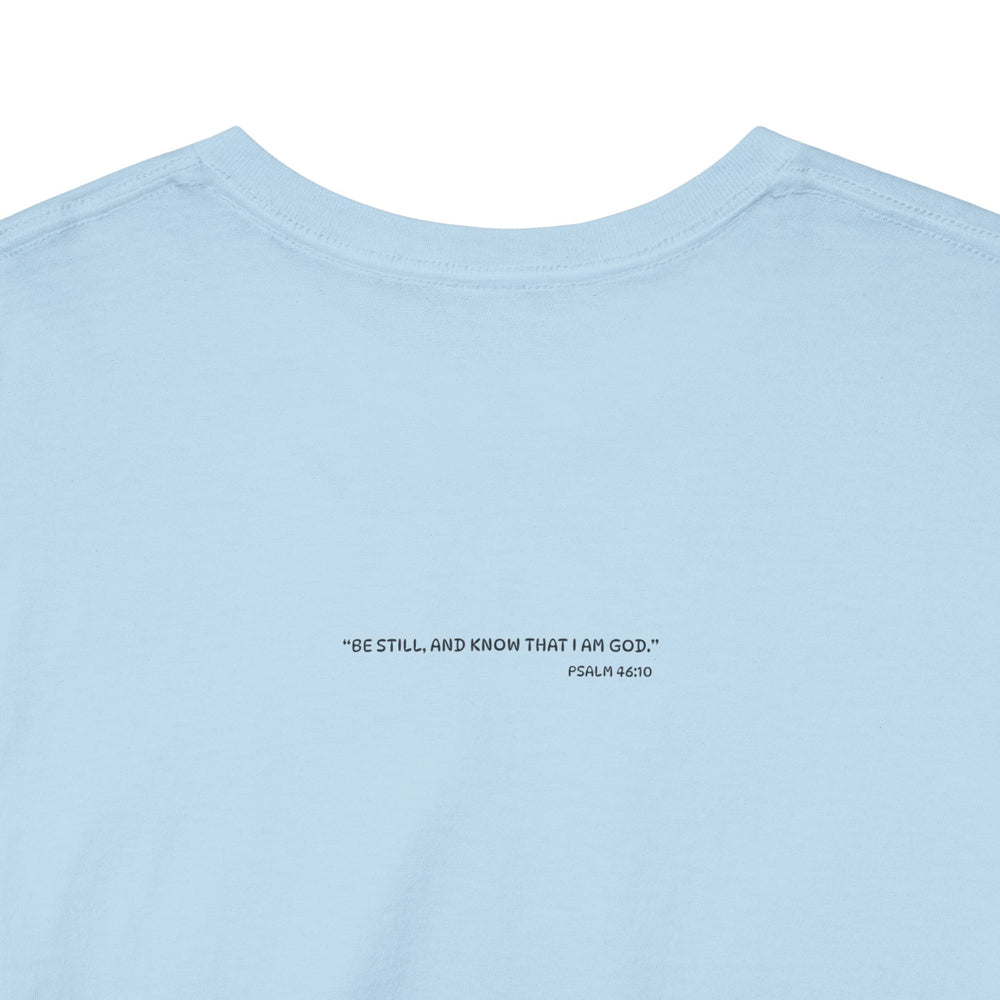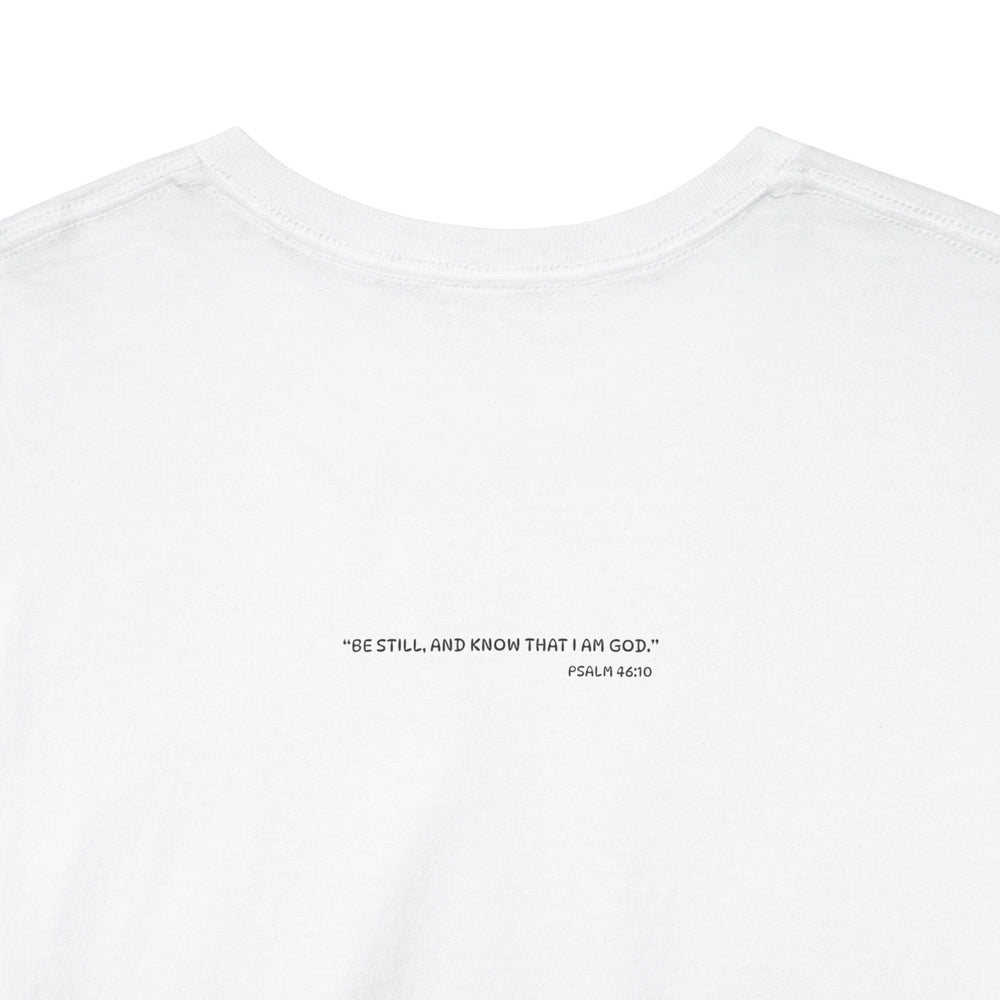 This unisex tee features the verse Psalm 46:10 – "Be still, and know that I am God." It gently reminds you to set aside time for essential activities. The design includes clean lines and an eye-catching look, suitable for layering or solo wear. It's a versatile piece that enhances any wardrobe.